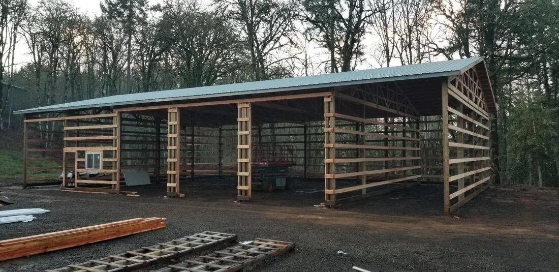 If you are in need of an Oregon pole building to use as a garage, office, hobby shop, or workshop, give us a call! We will happily answer any of your questions and walk you through the process of pole building construction. Our prices are fair and are work is honest, professional, appealing, and durable. We know you'll be happy with any pole barn from us -- whether it's an agricultural pole building or you just want to add an awning to an existing building. Let's get started on your next project today!